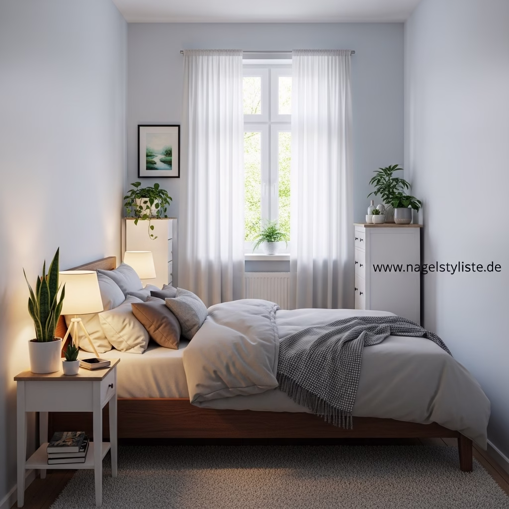 Reduzierte Gestaltung bedeutet nicht Verzicht, sondern Konzentration auf das Wesentliche. In kleinen Schlafzimmern ist diese Zurückhaltung besonders wirkungsvoll. Sie lässt den Raum atmen und verhindert Überladung.