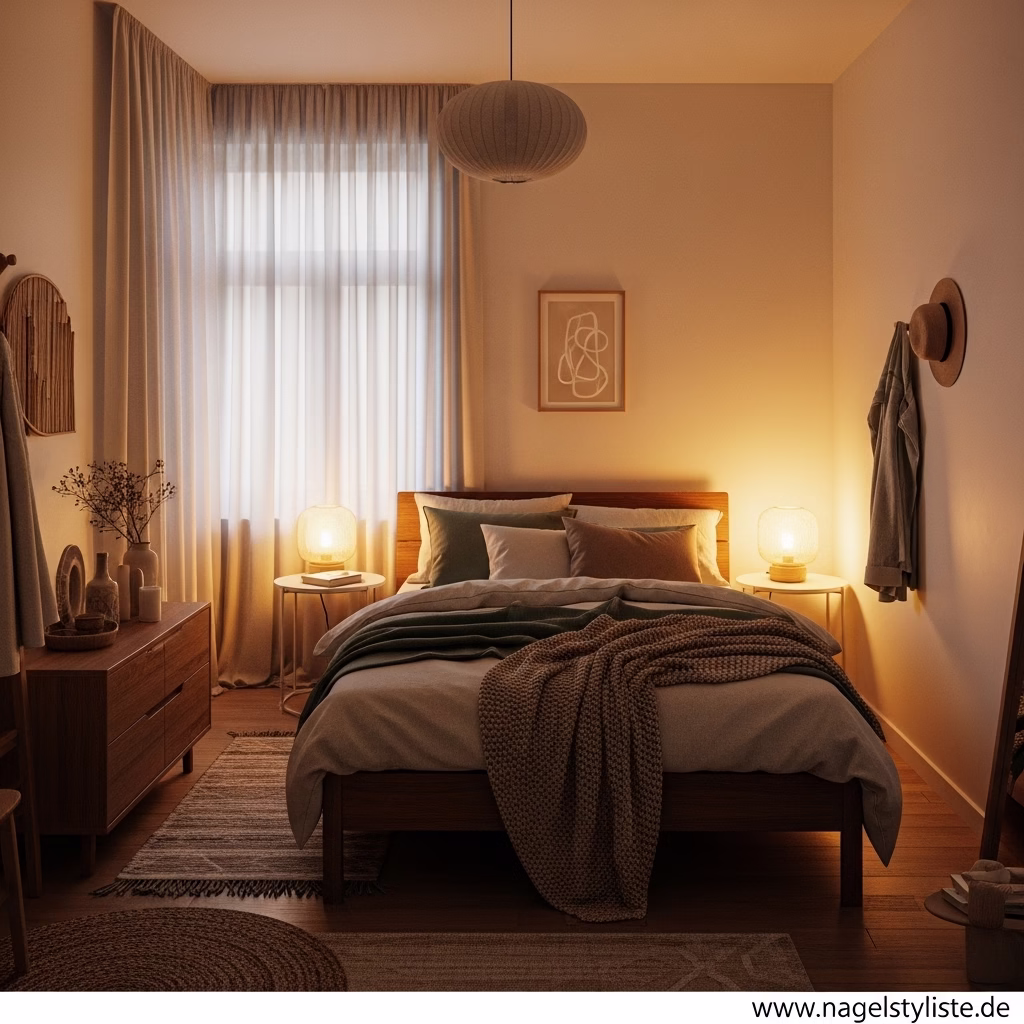 Licht beeinflusst die Wahrnehmung von Raum stark. In kleinen Schlafzimmern übernimmt es eine strukturierende Funktion. Sanfte Lichtstimmungen verleihen Tiefe und schaffen eine angenehme Atmosphäre.