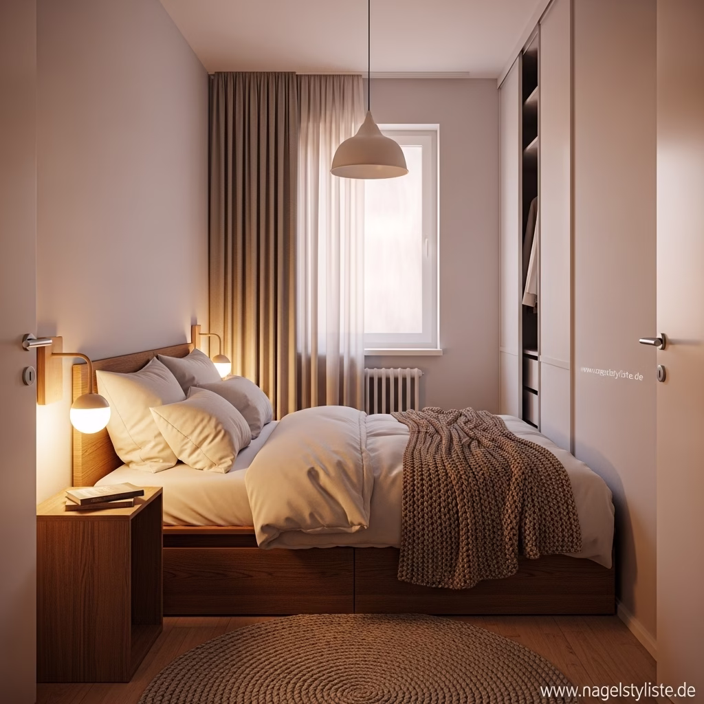 Ein gut gestaltetes kleines Schlafzimmer kann Geborgenheit vermitteln. Die Nähe der Elemente schafft Intimität, ohne Enge zu erzeugen.