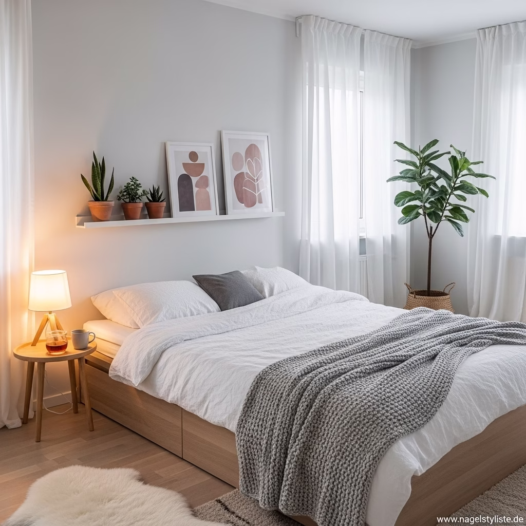 Eine minimalistische Schlafzimmer Einrichtung setzt auf zurückhaltende Farben. Sanfte, neutrale Töne schaffen eine ruhige Basis und fördern ein entspanntes Raumgefühl.