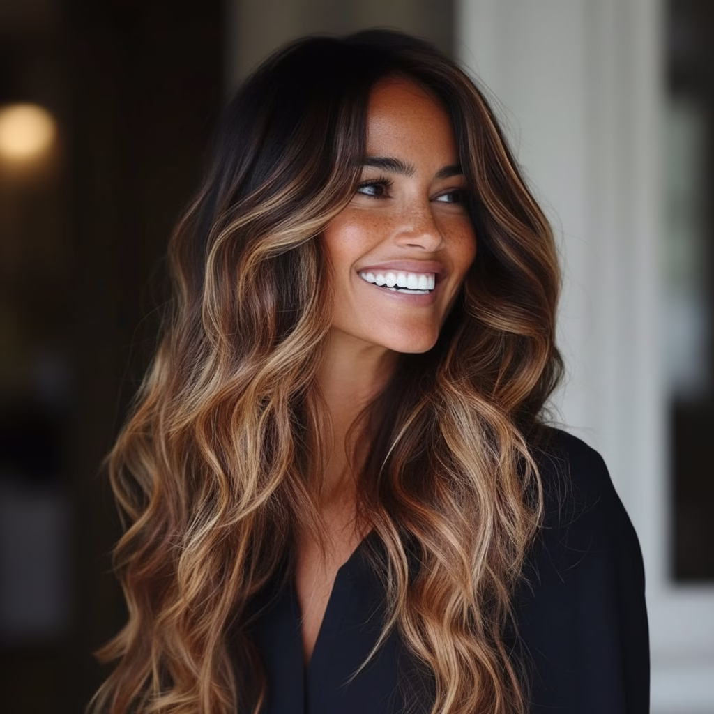 Highlights verleihen schwarzem Haar eine moderne Note, ohne es trendabhängig zu machen. Die Kombination aus dunkler Basis und helleren Akzenten bleibt zeitlos und vielseitig einsetzbar.