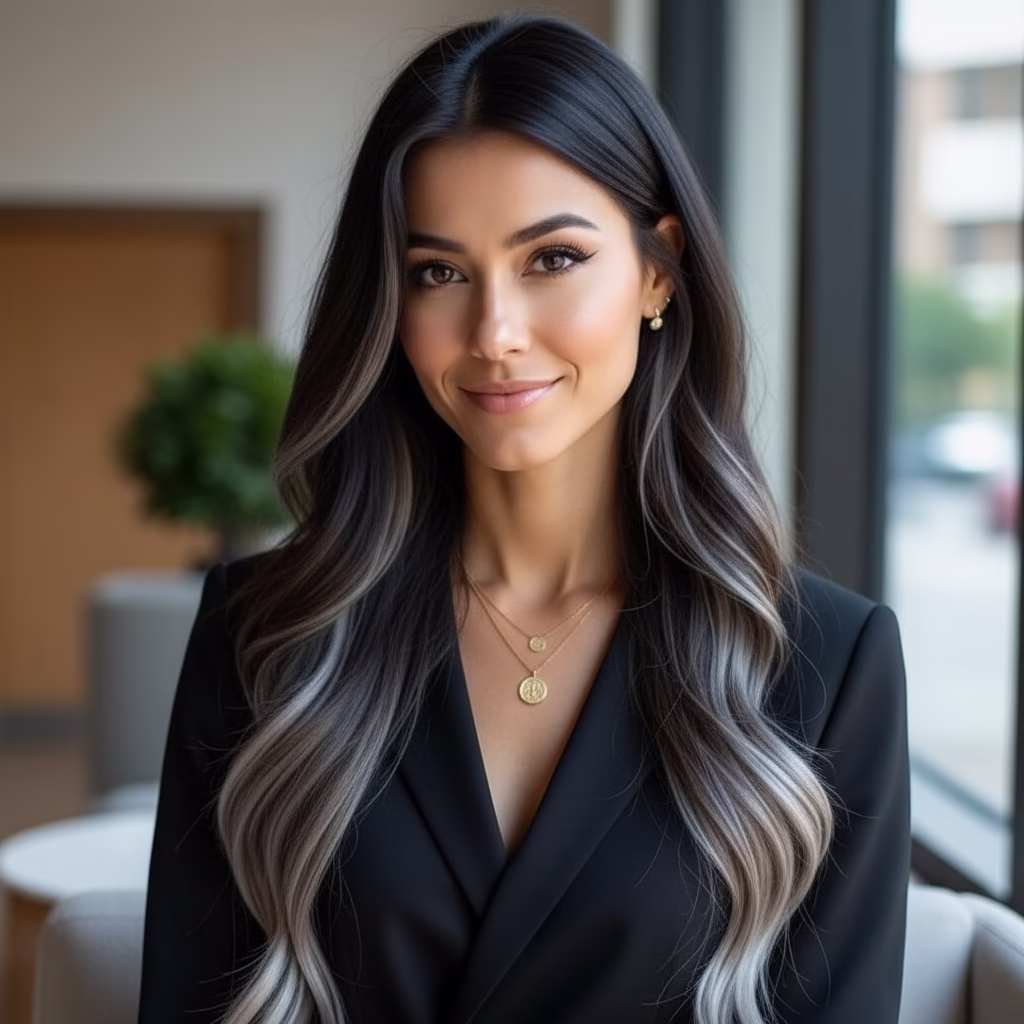 Schwarze Haare mit Highlights passen zu unterschiedlichen Stilrichtungen. Sie wirken elegant zu klassischen Outfits, modern zu minimalistischen Looks und ausdrucksstark zu auffälliger Mode.