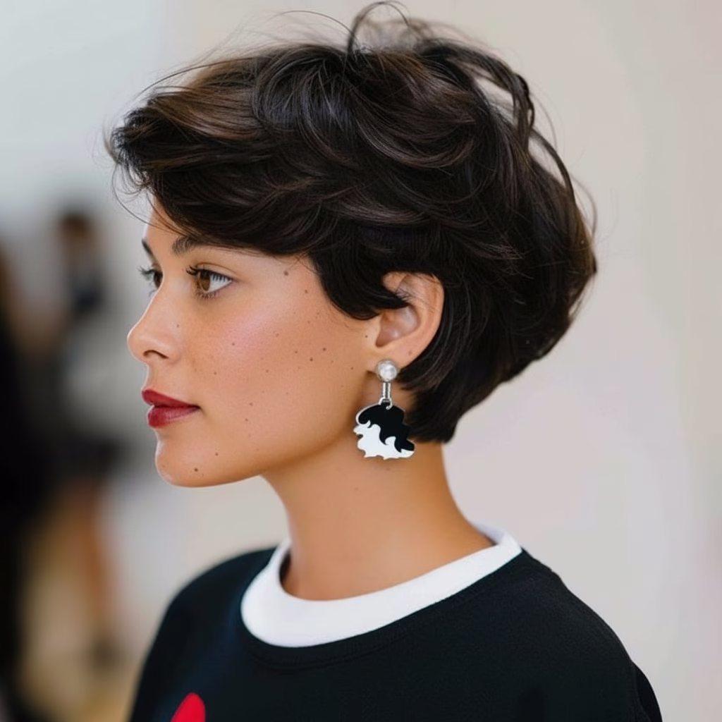 Gleichzeitig lassen sich schwarze Kurzhaarfrisuren vielseitig kombinieren. Sie passen zu minimalistischen Outfits ebenso wie zu eleganten oder avantgardistischen Styles. Diese Anpassungsfähigkeit macht sie zu einer der spannendsten Frisurenoptionen unserer Zeit.