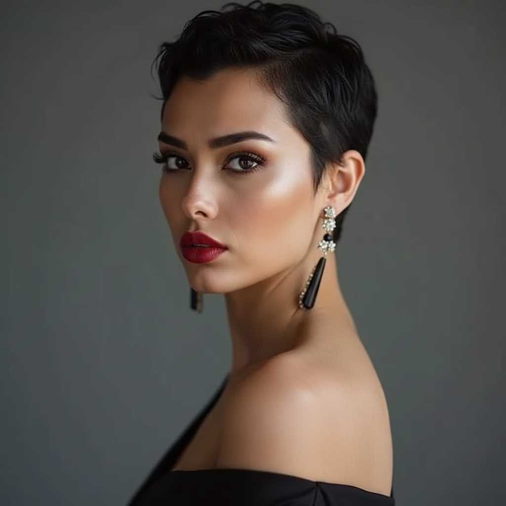 Schwarze Kurzhaarfrisuren lassen sich hervorragend an unterschiedliche Gesichtsformen anpassen. Der Schlüssel liegt in der richtigen Schnitttechnik, denn die dunkle Farbe verstärkt jede Linie.