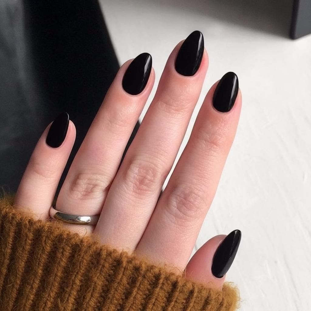 Kurze schwarze Nägel fügen sich harmonisch in ein modernes Erscheinungsbild ein. Sie unterstützen klare Linien, schlichte Formen und eine reduzierte Ästhetik. Dabei wirken sie nie kalt, sondern bewusst gewählt.