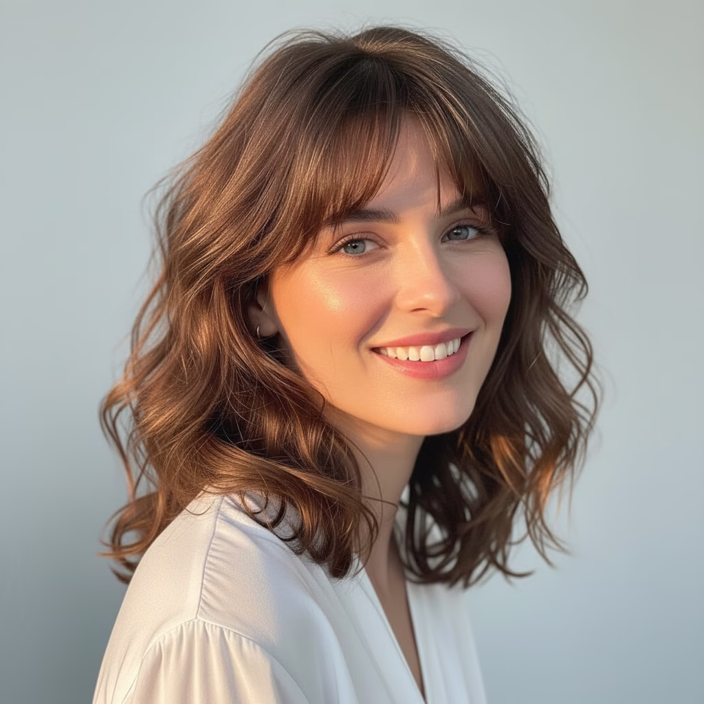 Diese Vielseitigkeit macht Soft Curtain Bangs besonders attraktiv, da sie fast jedem Look schmeicheln und sowohl für Alltag als auch besondere Anlässe geeignet sind.