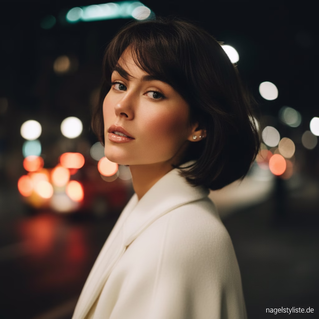 Durch die Kombination aus Pony und Schnitt entsteht ein harmonisches Gesamtbild, das natürlich wirkt und gleichzeitig einen modernen Akzent setzt.