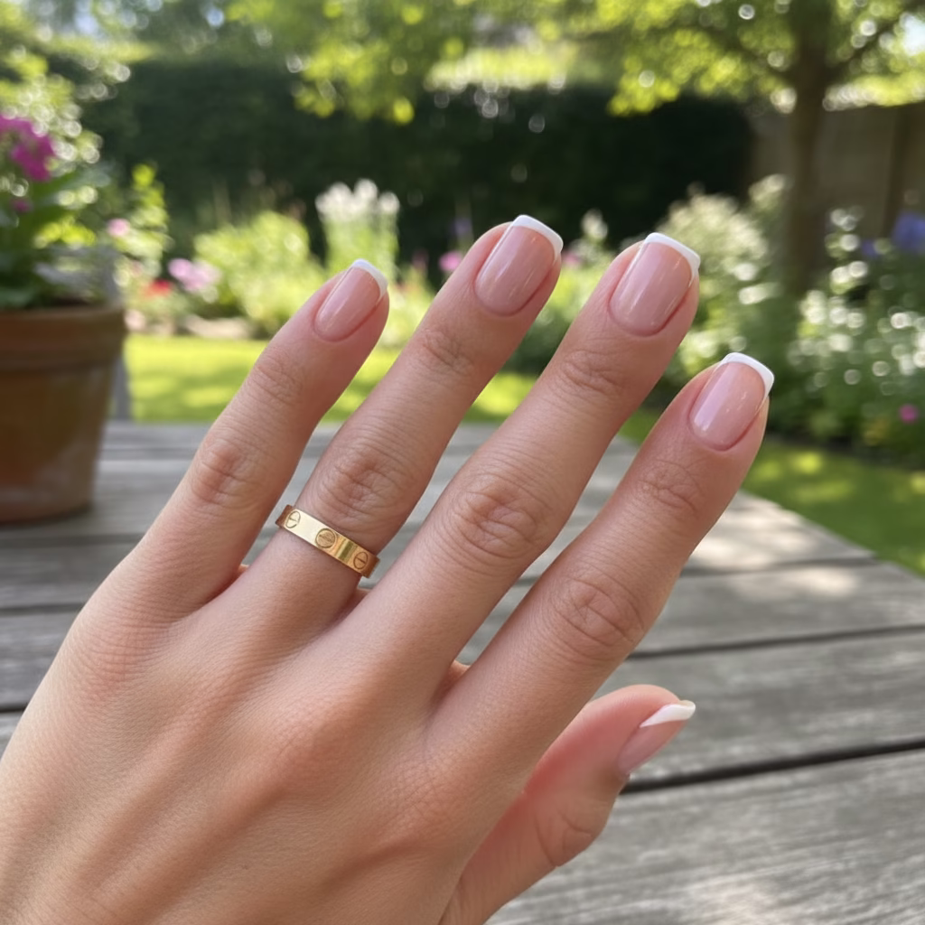 Kurze Nägel lenken den Blick stärker auf Form und Design. Beim French-Look bedeutet das: Die Spitze wird präziser wahrgenommen, der Kontrast wirkt feiner und kontrollierter.