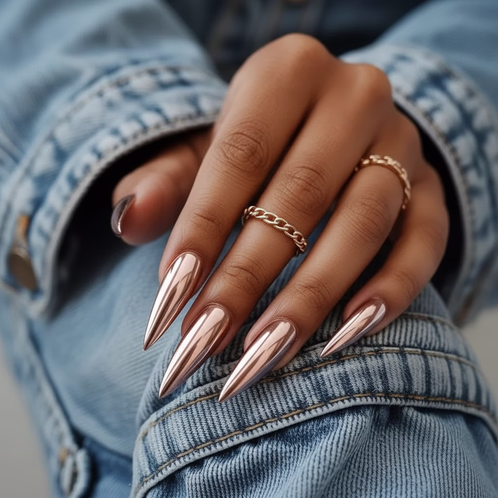 Die Stiletto-Form ist bekannt für ihre dramatische Ausstrahlung. Sie verlängert optisch die Finger und verleiht den Händen eine elegante Silhouette. Im Herbst, wenn Kleidung schwerer und strukturierter wird, schafft diese Form einen spannenden Kontrast.