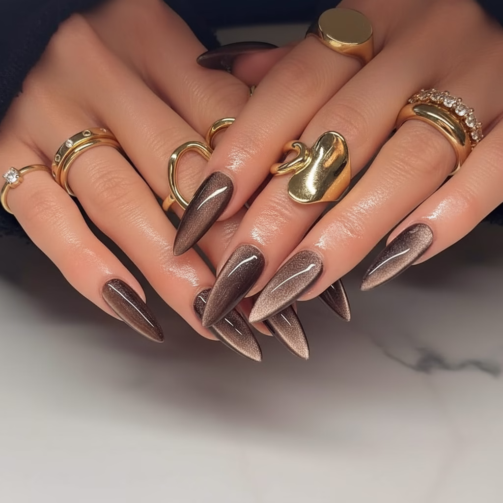 Der Herbst lebt von Kontrasten: weich und kantig, warm und dunkel, ruhig und kraftvoll. Genau diese Gegensätze spiegeln sich in Stiletto Nägeln wider.