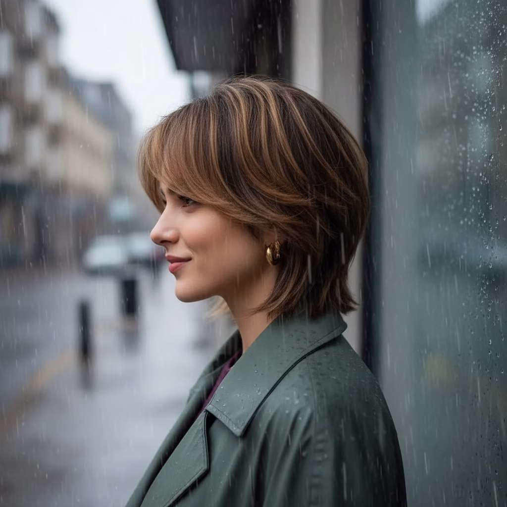 Ein kurzer Stufenschnitt lebt von Balance. Die Stufen sind so angelegt, dass sie Struktur schaffen, ohne den Look zu überfrachten.