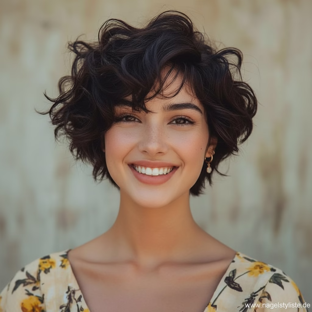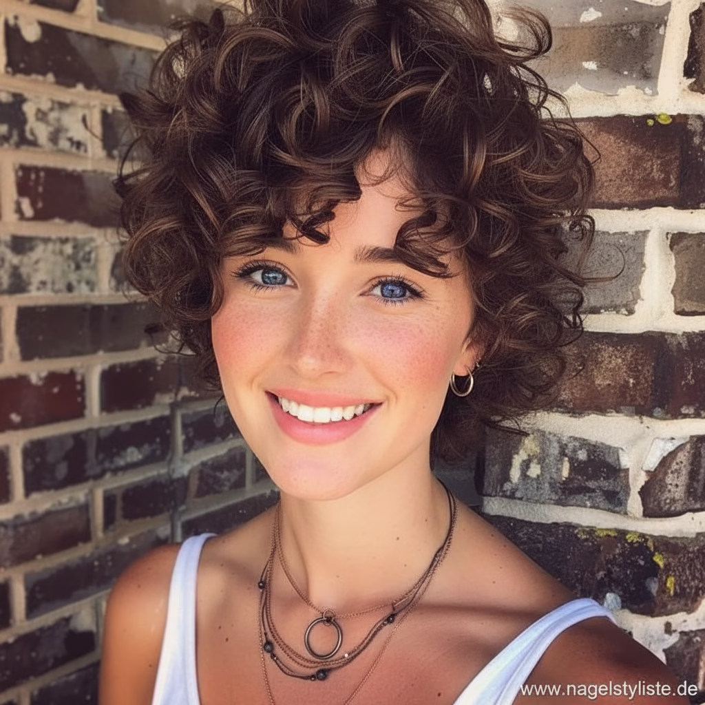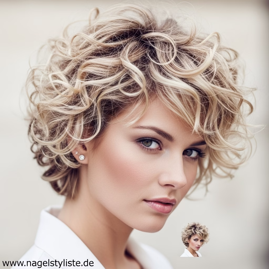 Auch fransige Kurzhaarfrisuren mit Locken sind im Trend. Die feinen Stufen sorgen für Bewegung und eine natürlich wirkende Struktur. Sie lassen den gesamten Look weich, dynamisch und jugendlich erscheinen.