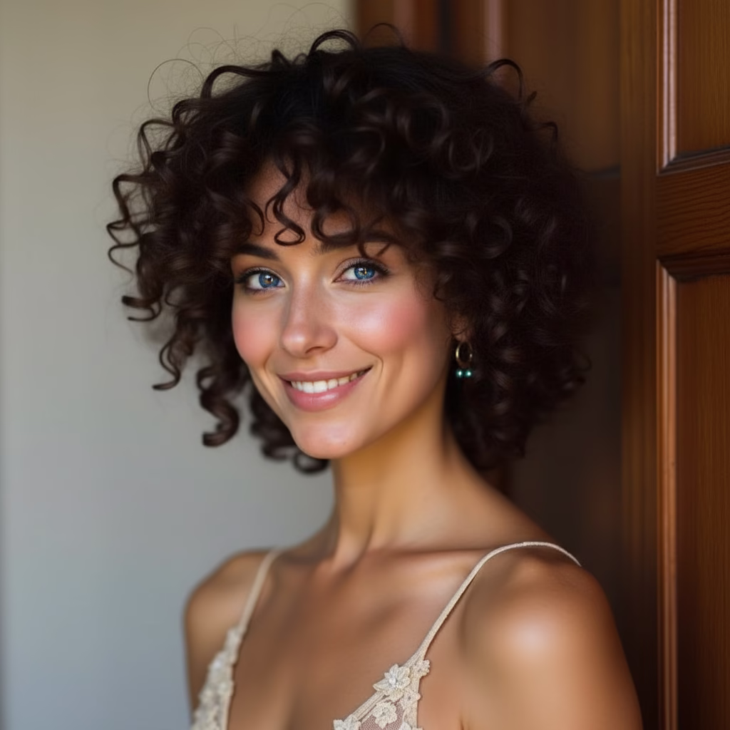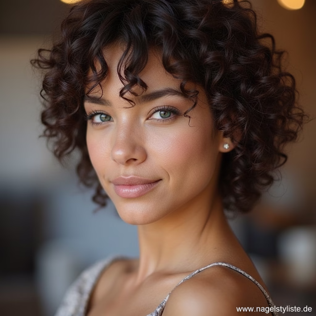 Ovale Gesichter können nahezu jeden lockigen Kurzhaarschnitt tragen. Stufenschnitte betonen die natürliche Harmonie der Gesichtszüge und verleihen zusätzliche Leichtigkeit.