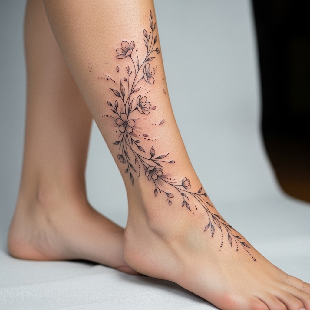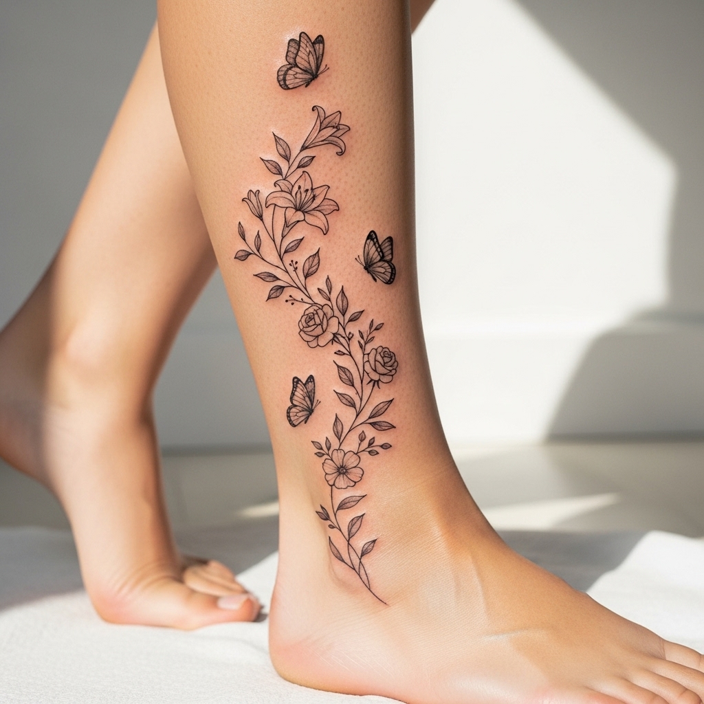 Der Bereich zwischen Knie und Fuß gehört zu den beliebtesten Stellen für Tattoos bei Frauen. Er ist präsent, wandelbar und bietet vielfältige gestalterische Möglichkeiten.