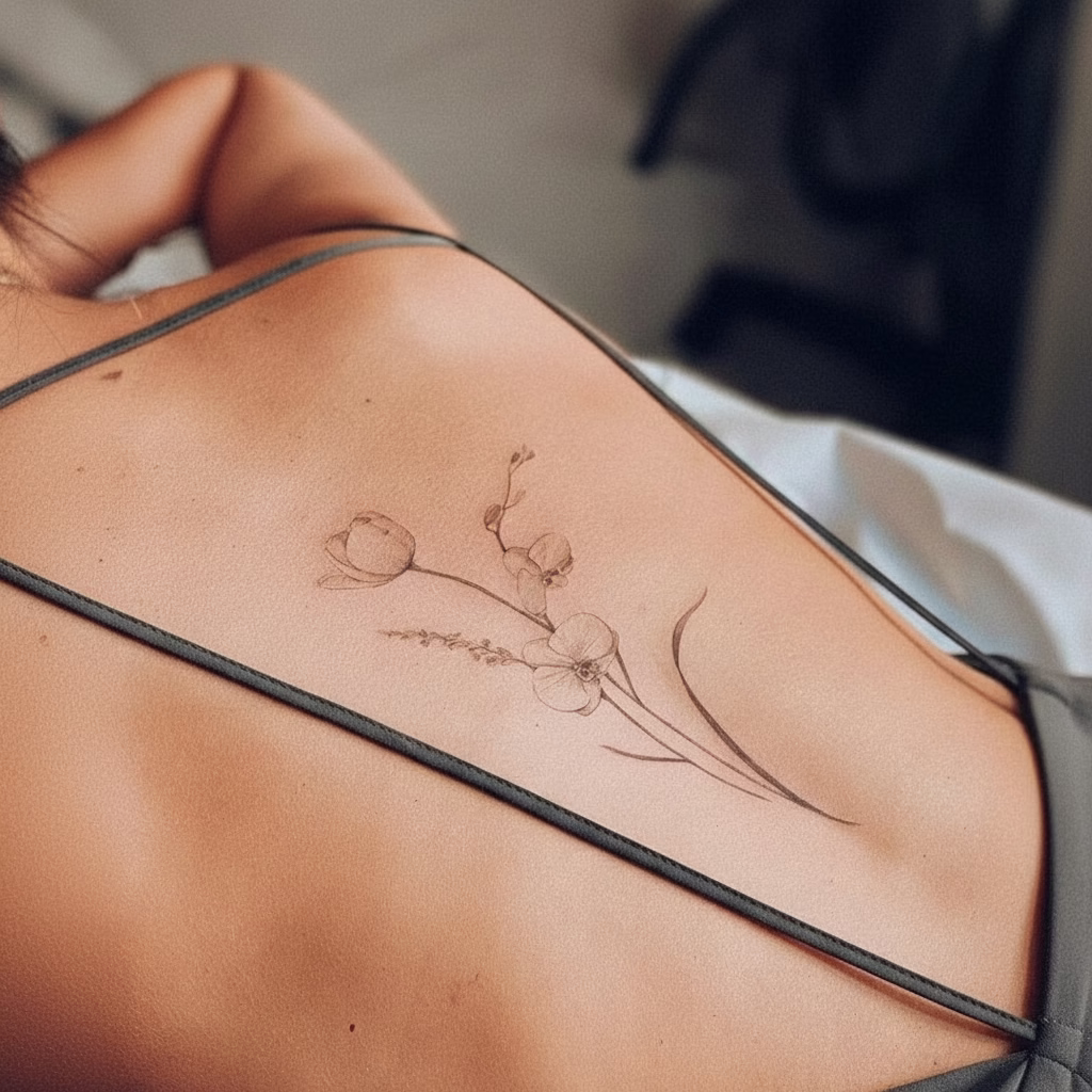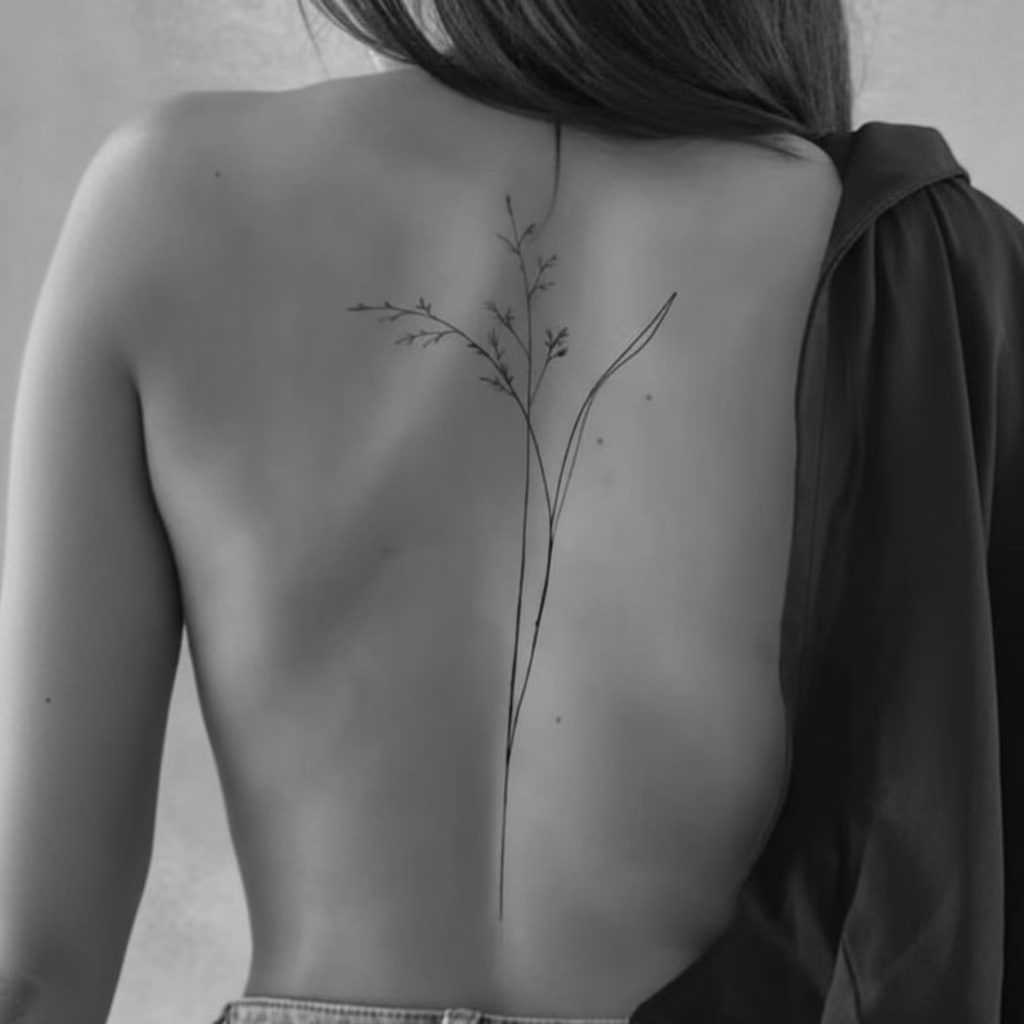 Nicht jedes Rücken-Tattoo muss groß sein. Kleine, filigrane Motive im oberen Rücken oder entlang der Wirbelsäule wirken elegant und sehr feminin. Sie ziehen Aufmerksamkeit durch Zurückhaltung auf sich und unterstreichen eine klare ästhetische Haltung.