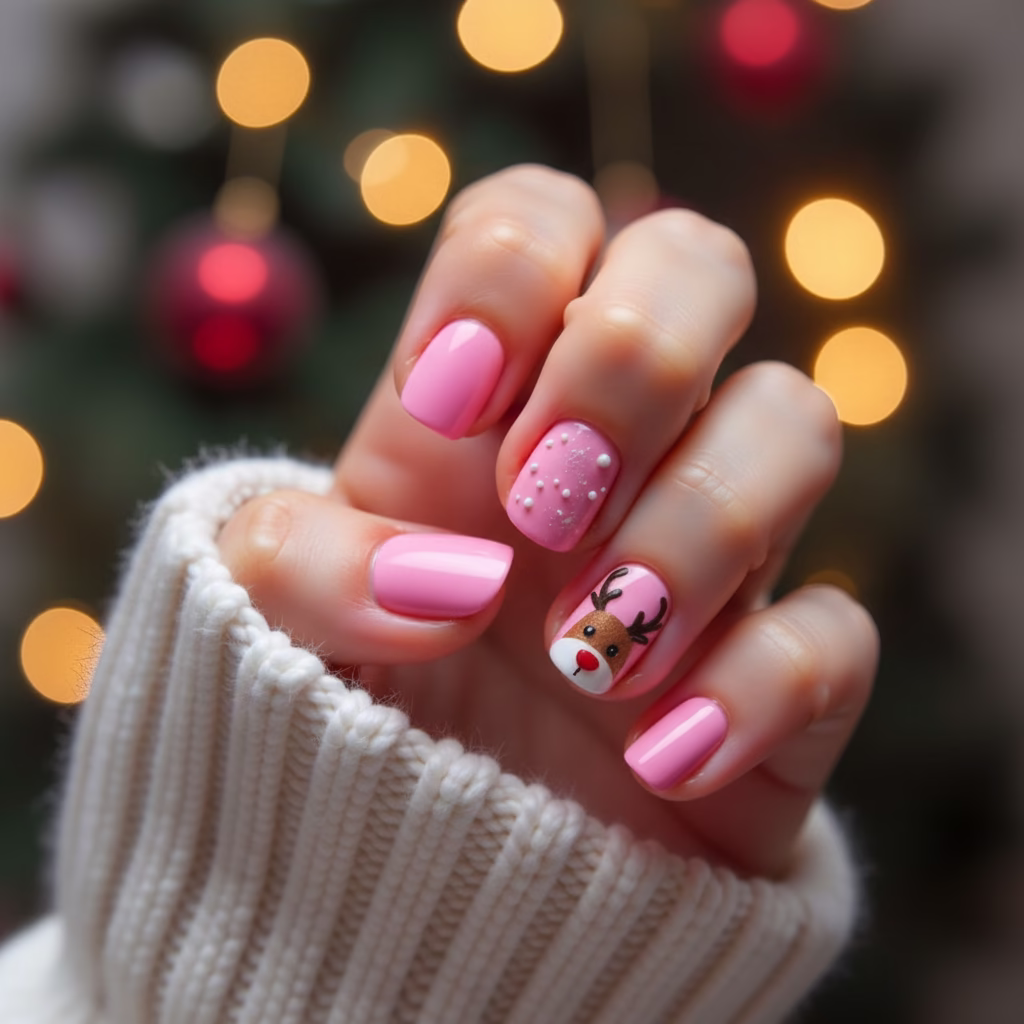 Pink Christmas Nails bieten eine der höchsten Variationsmöglichkeiten innerhalb der Festtagslooks.