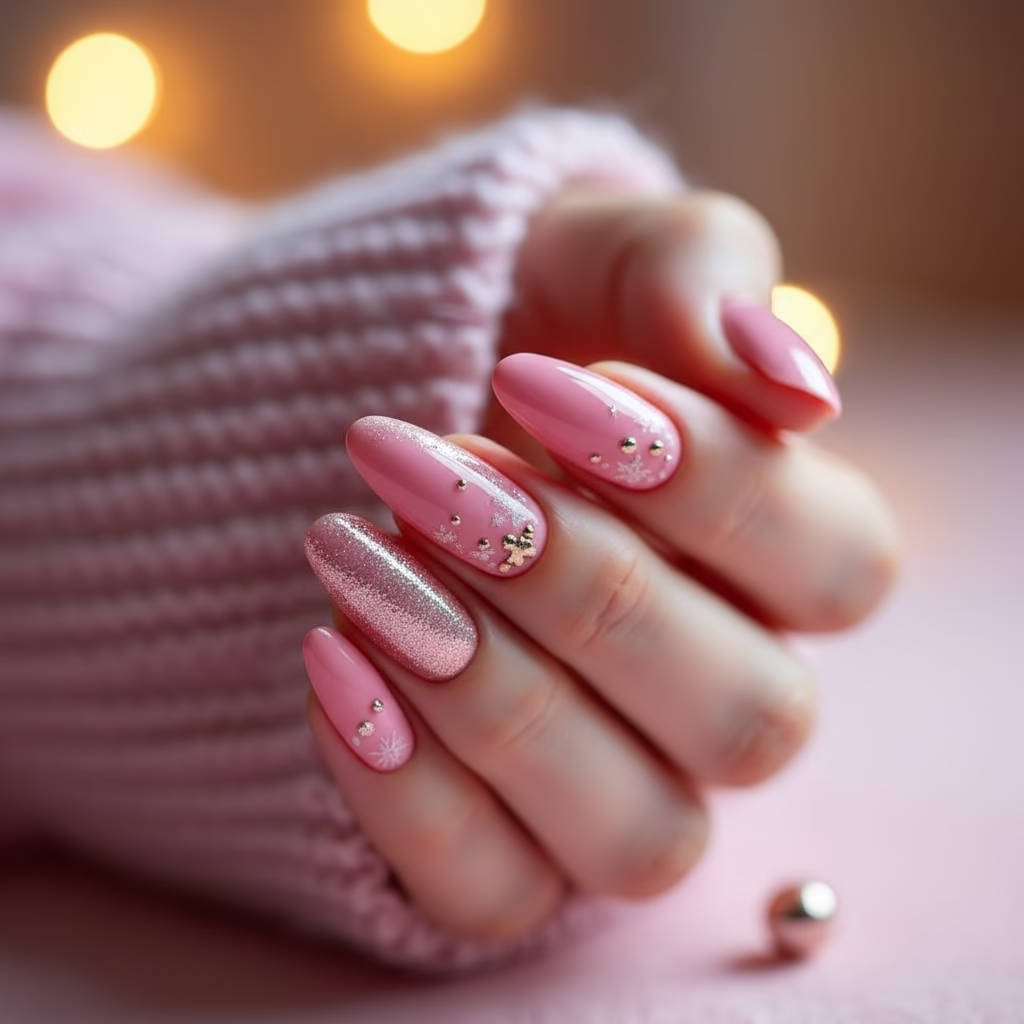 Glanzeffekte und Akzente, die Pink Christmas Nails veredeln