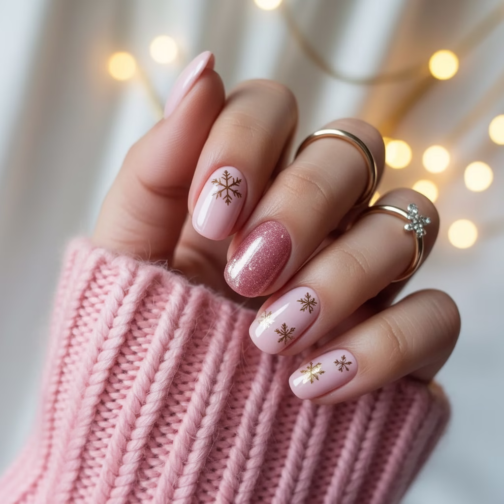 Pinktöne, die Weihnachtsnägel glamourös und modern wirken lassen