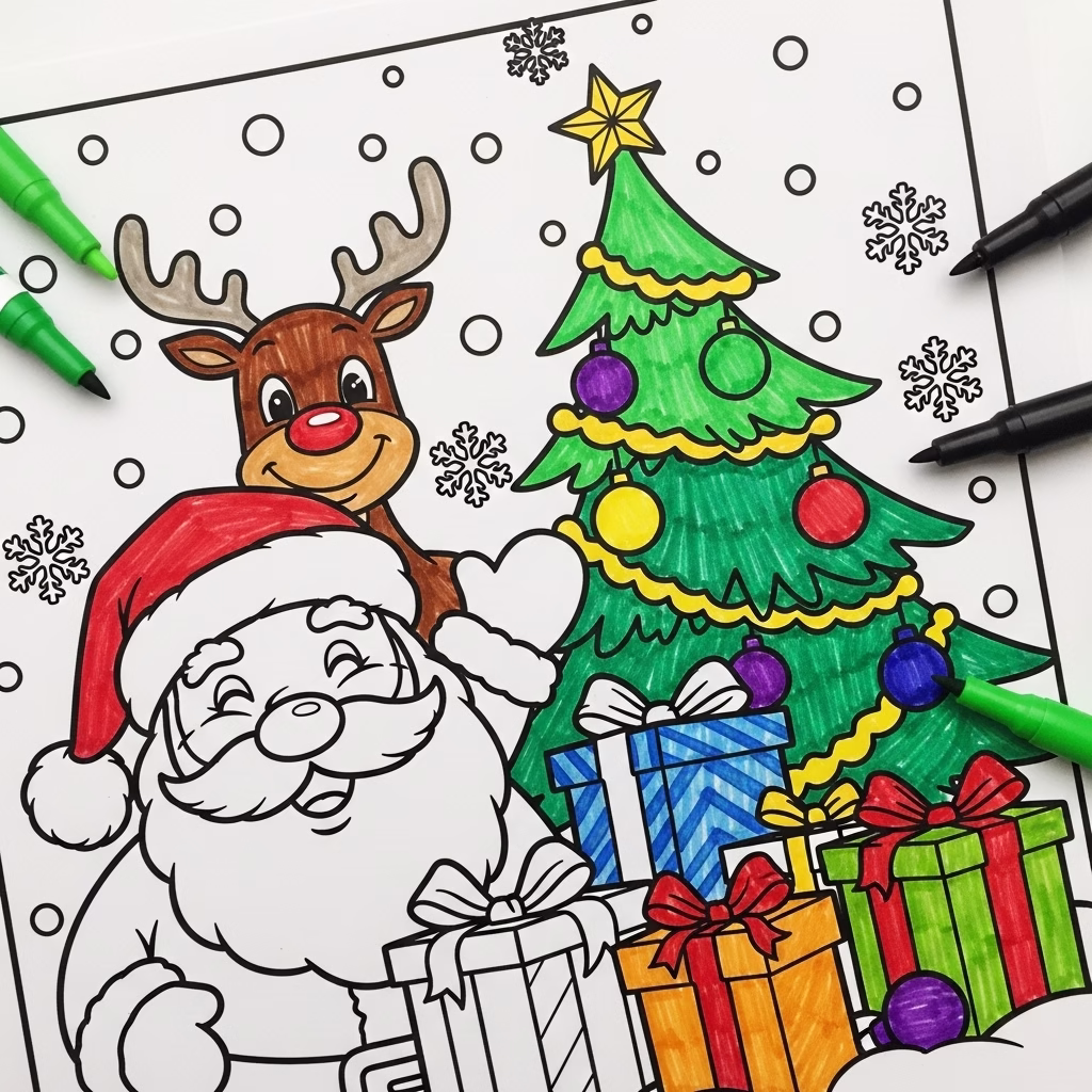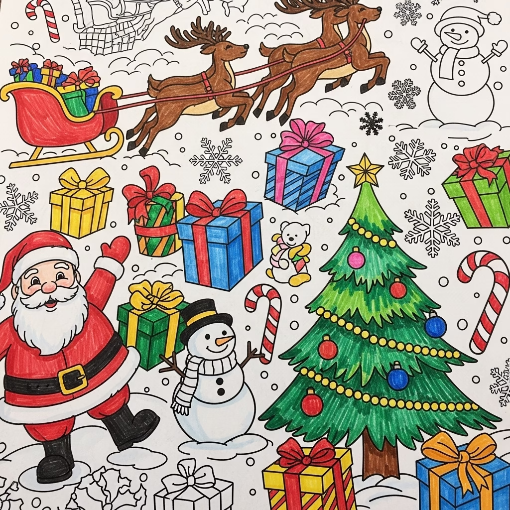Für Kinder ist Weihnachten voller Magie. Ausmalbilder greifen diese Magie auf und geben ihr eine Form. Weihnachtsmann, Rentiere, Geschenke und Schneelandschaften werden zu vertrauten Figuren, mit denen Kinder sich spielerisch auseinandersetzen können.