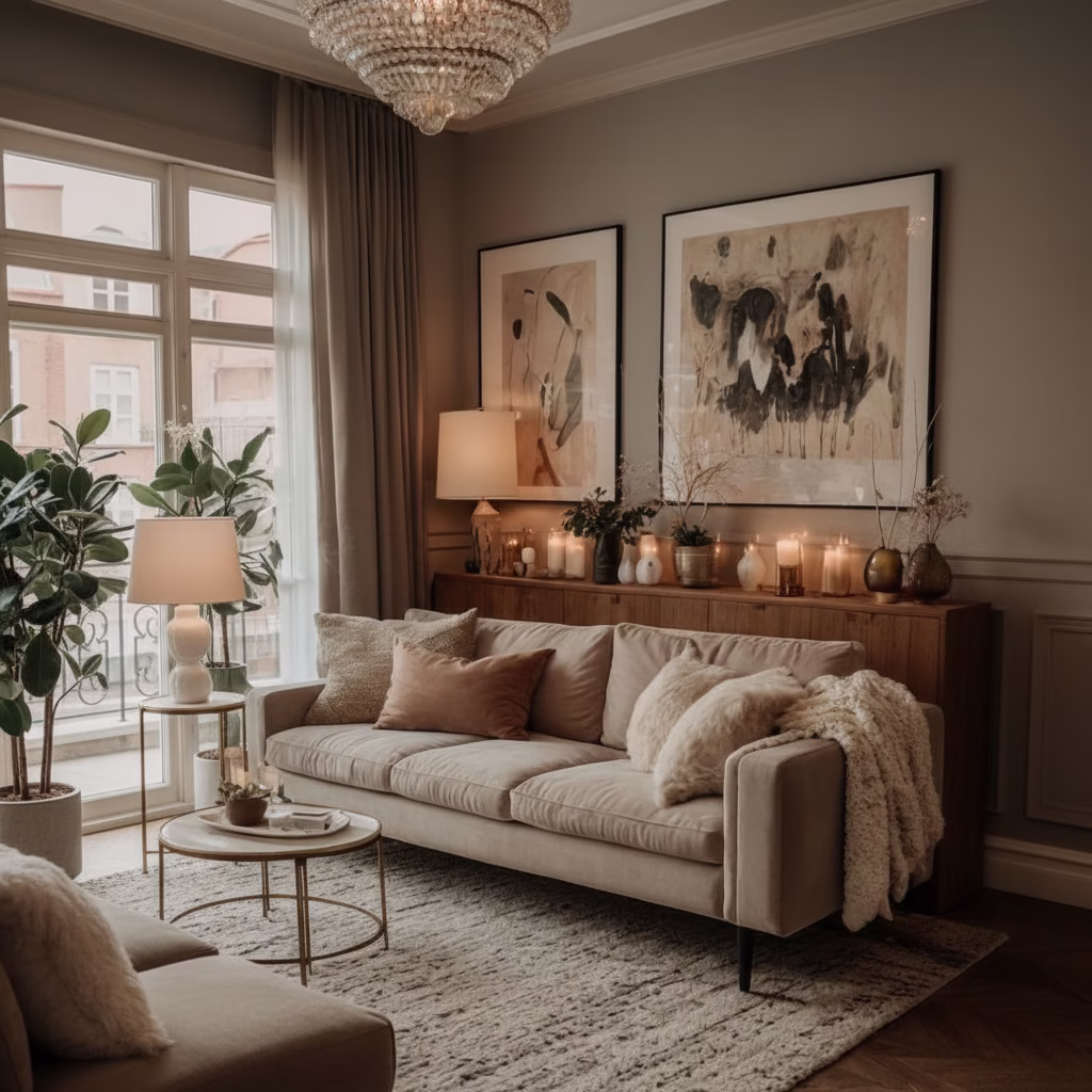Ein beiges Wohnzimmer ist kein kurzfristiger Trend, sondern eine bewusste Entscheidung für Beständigkeit und Wohlbefinden.