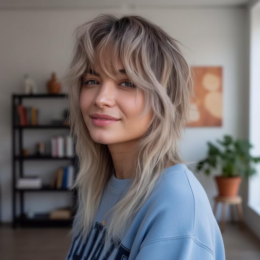 Diese Verbindung aus Struktur und Helligkeit macht den Wolf Cut zu einem starken Stilstatement.